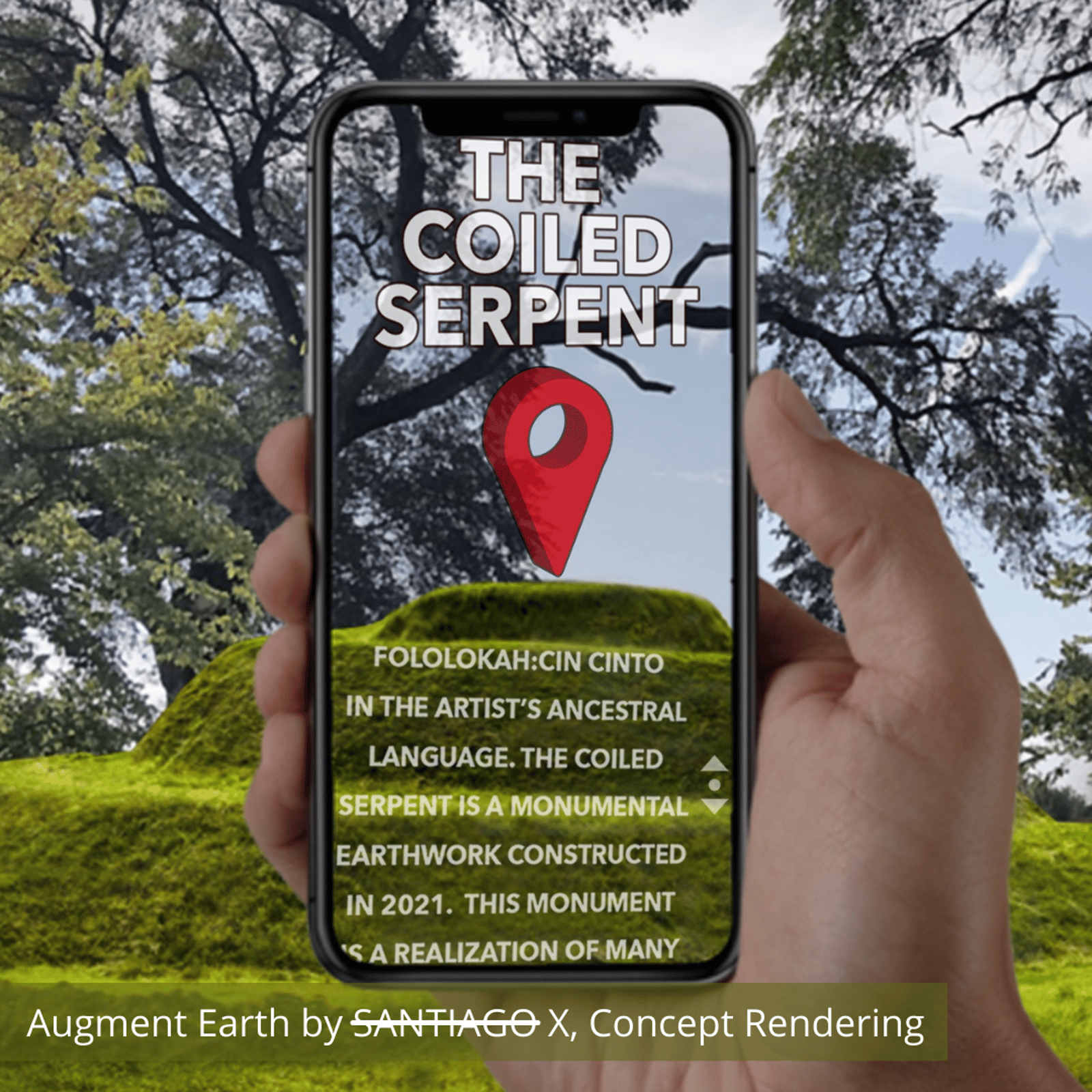 X. “The project leverages augmented reality to rewrite histories through an Indigenous lens and partake in radical visualization of a future that is more just.”