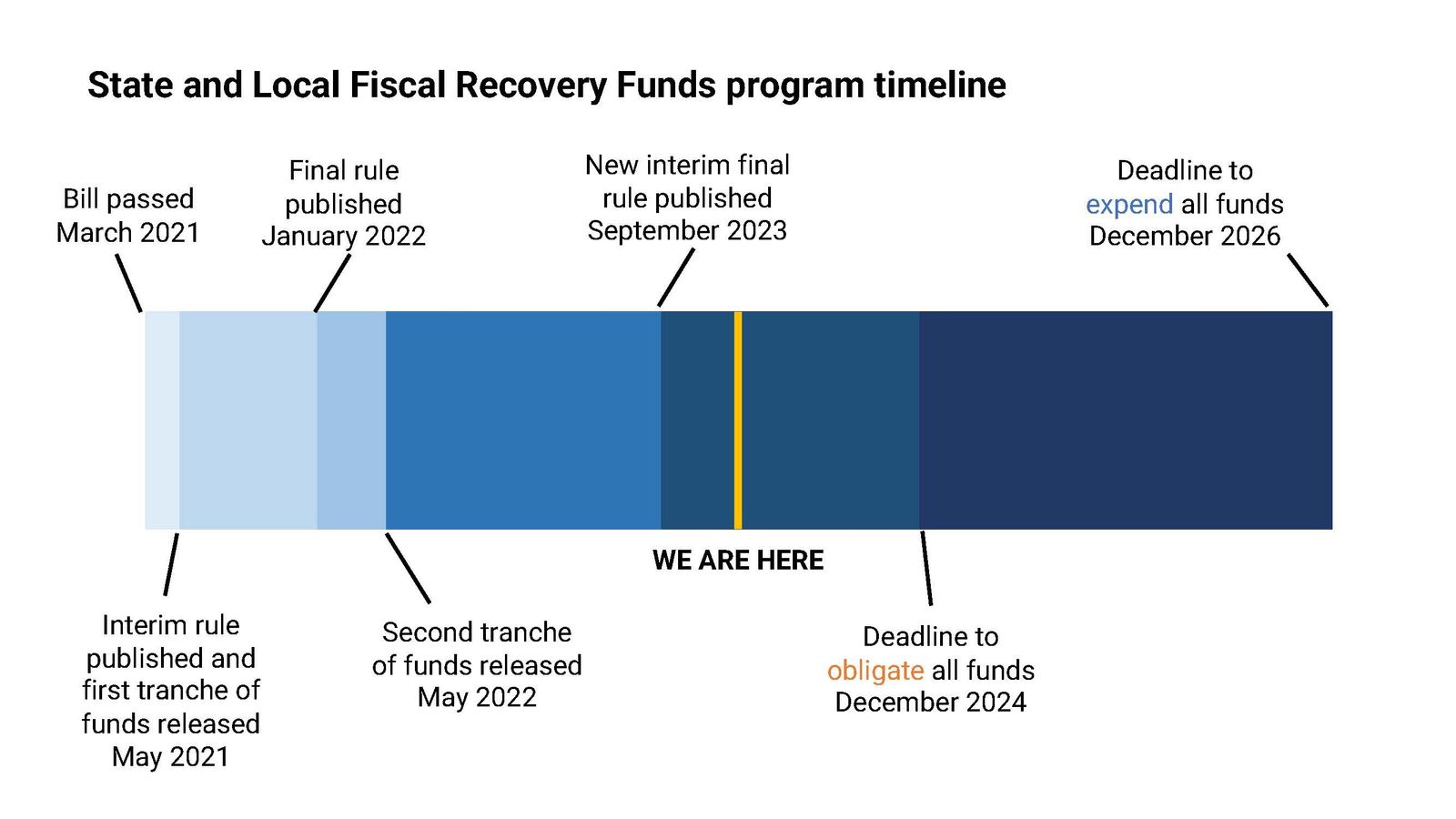 In keeping with the “rescue” theme of the Act, Congress provided the SLFRF dollars with a timeline. Recipients must obligate their funds—that is, legally dedicate them to specific uses, often through contractual agreements—by December 31, 2024. From there, recipients must expend their full funding allocations by the end of 2026.