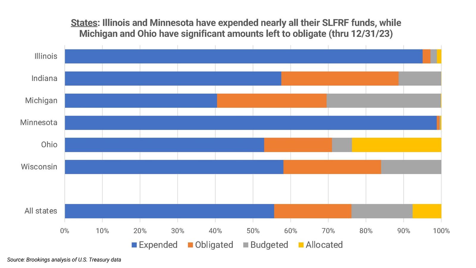 New data from the U.S. Treasury Department reflecting how states, counties, and cities have deployed their SLFRF dollars through the end of 2023 presents an opportune moment to assess progress in light of these upcoming statutory deadlines, particularly in the Great Lakes region.